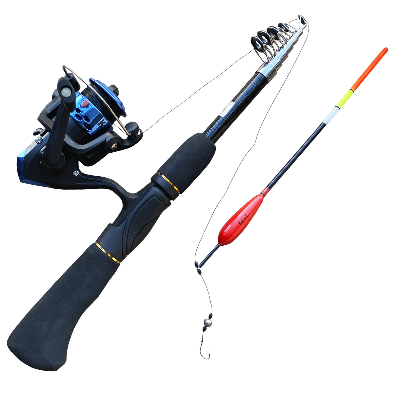 Компактне телескопічне вудилище оснащене снастю для поплавця для далекого закидання.
