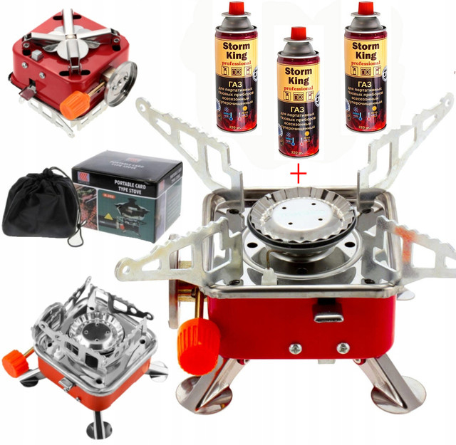 Міні туристична піч на газових балонах. Невеликий розмір ідеально підходить для туризму , подорожей, альпінізму, під час велосипедних поїздок. Оснащений п'єзоелектричним запалюванням , відкидними ніжками і чотирма міцними металевими відкидними руками під посудиною.